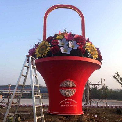 玻璃钢大花篮雕塑寓意着繁荣与吉祥,象征着国家富强、社会和谐以及人民对美好生活的向往和祝福。